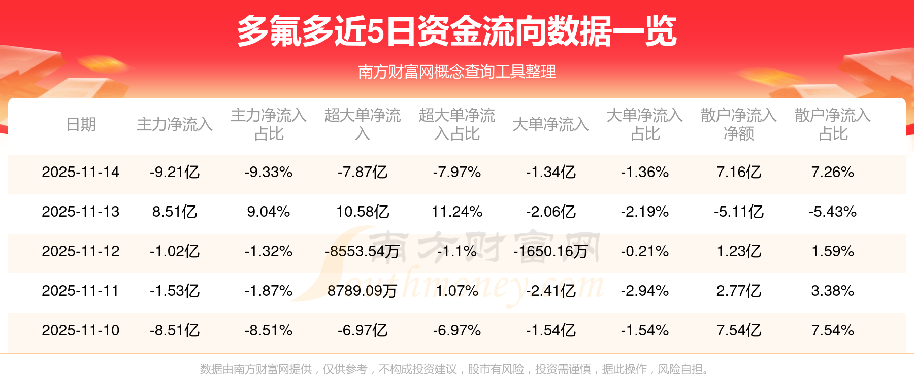 近5日資金流向一覽見下表: