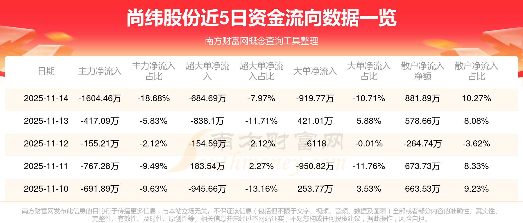 11月14日消息,尚緯股份11月14日主力資金凈流出1604.46萬元,超大單資金凈流出684.69萬元,大單資金凈流出919.77萬元,散戶資金凈流入881.89萬元。