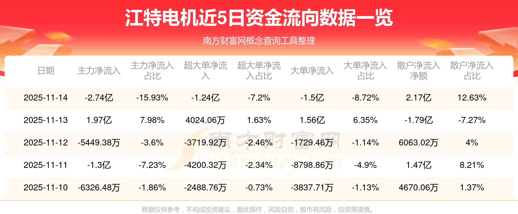 11月14日該股主力資金凈流出2.74億元,超大單資金凈流出1.24億元,大單資金凈流出1.5億元,中單資金凈流入5670.16萬元,散戶資金凈流入2.17億元。