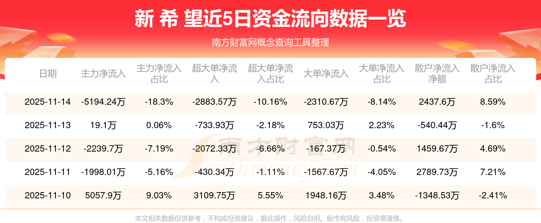 11月14日消息,新希望主力資金凈流出5194.24萬元,超大單資金凈流出2883.57萬元,散戶資金凈流入2437.6萬元。