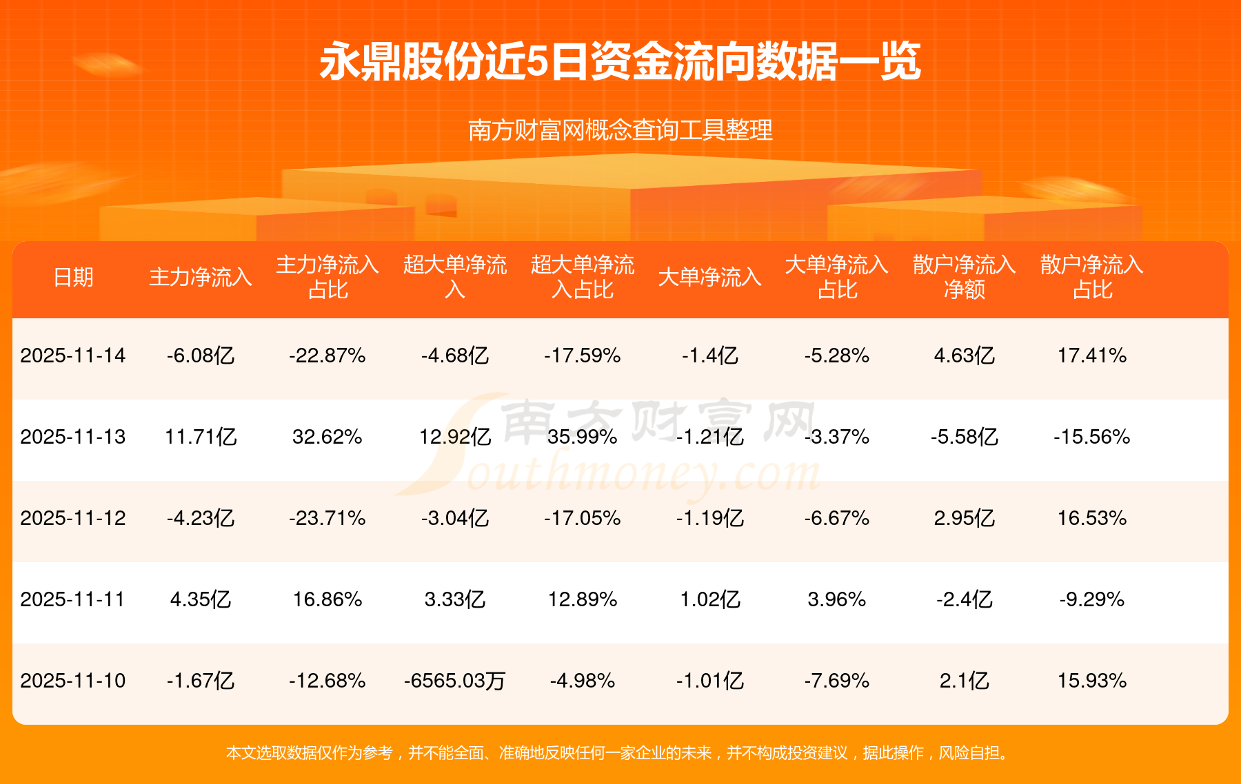 11月14日主力資金凈流出6.08億元,超大單資金凈流出4.68億元,換手率11.94%,成交金額25.97億元。