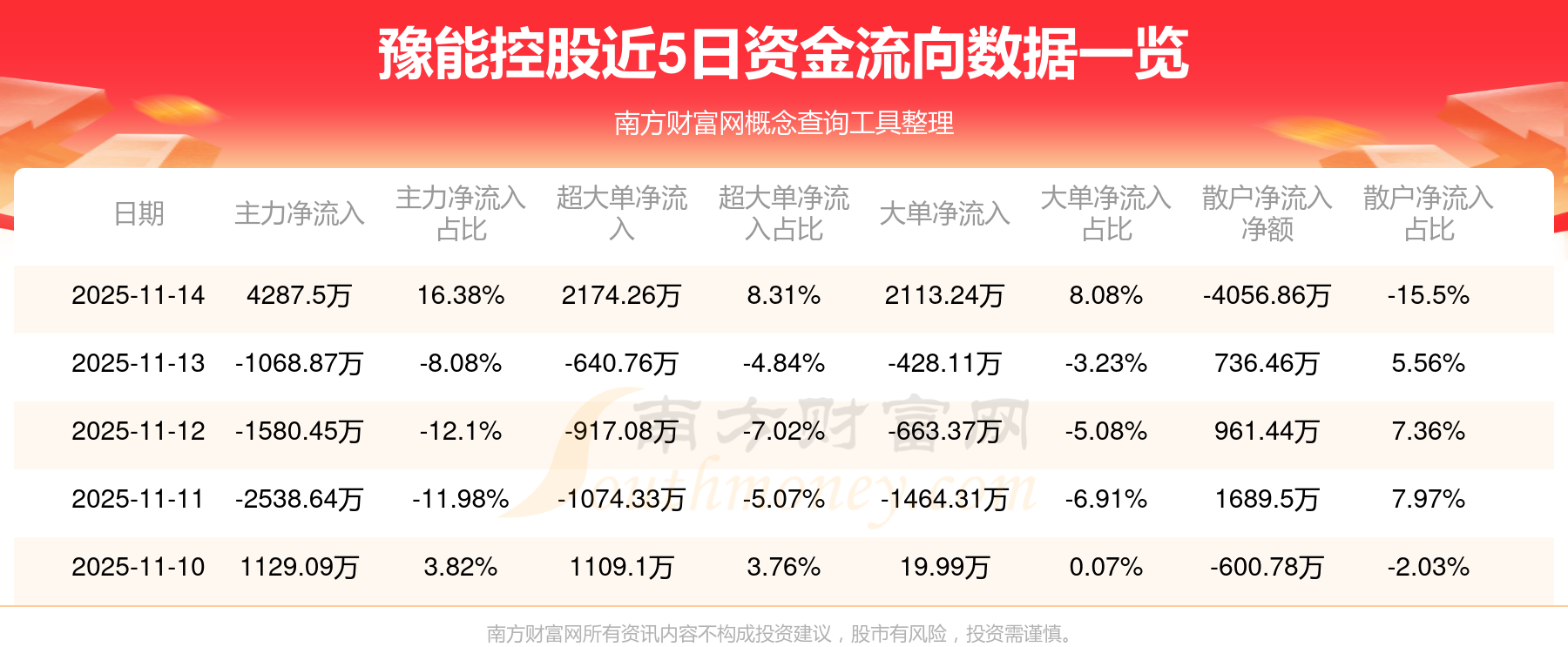 11月14日消息,資金凈流入4287.5萬元,超大單凈流入2174.26萬元,成交金額2.62億元。