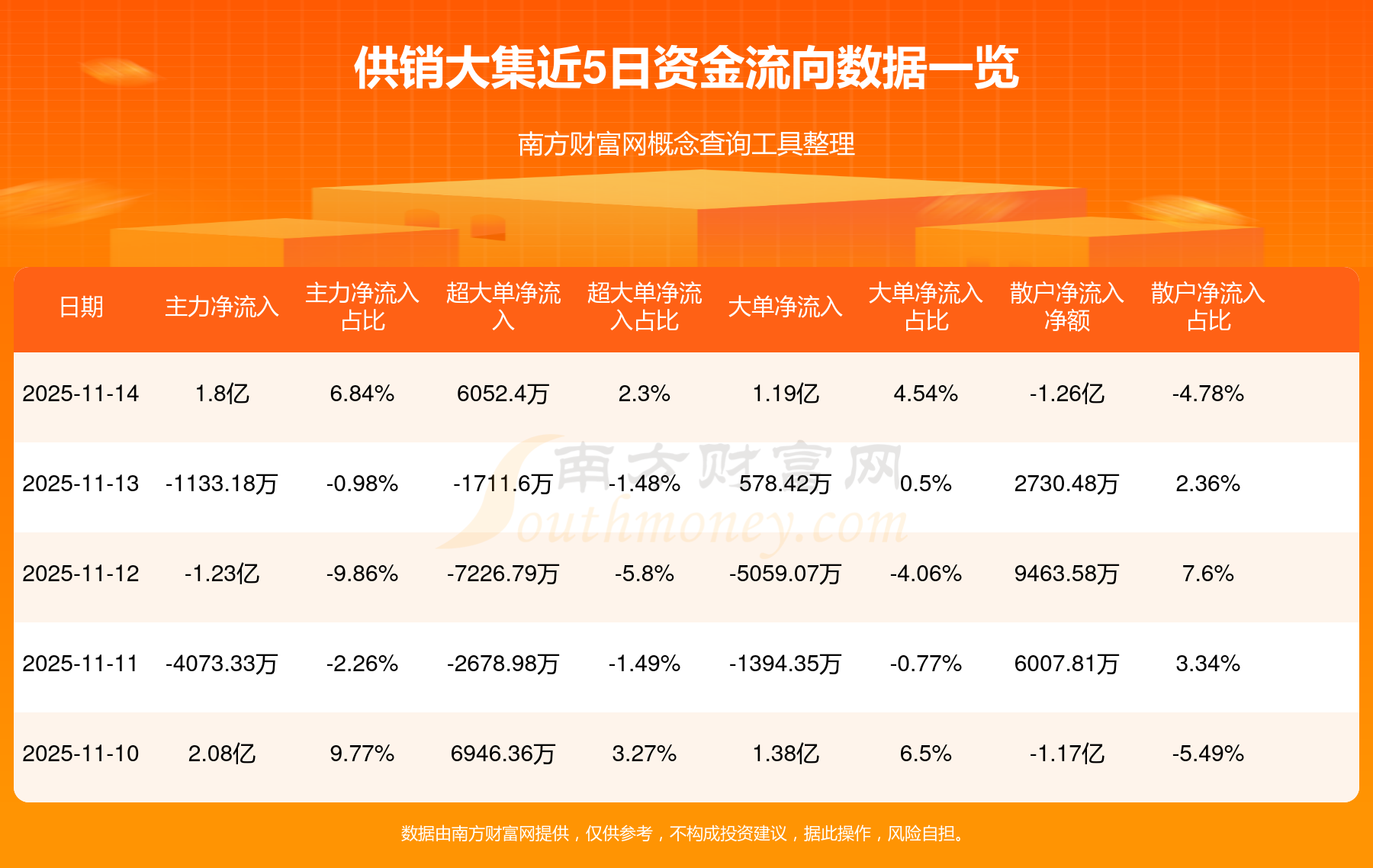近5日資金流向一覽見下表: