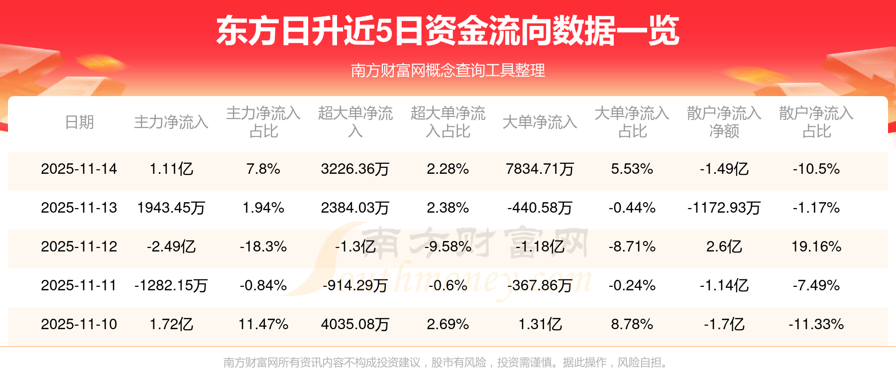 11月14日主力資金凈流入1.11億元,超大單資金凈流入3226.36萬元,換手率11.85%,成交金額14.17億元。
