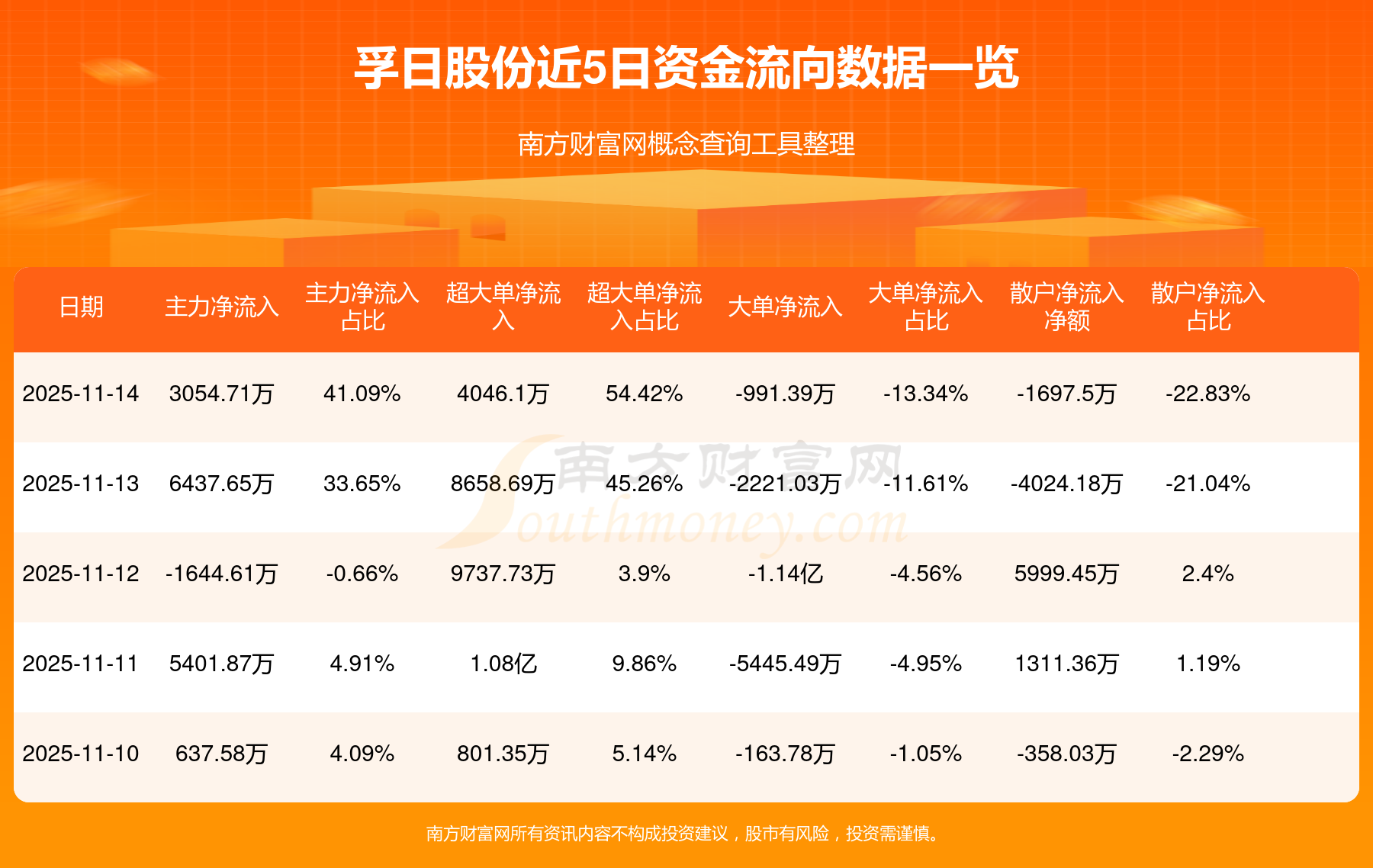 近5日資金流向一覽見下表: