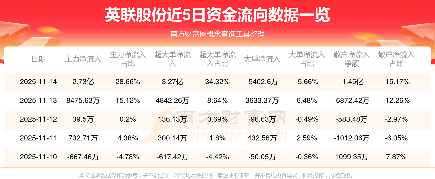 11月14日該股主力資金凈流入2.73億元,超大單資金凈流入3.27億元,大單資金凈流出5402.6萬(wàn)元,中單資金凈流出1.29億元,散戶資金凈流出1.45億元。