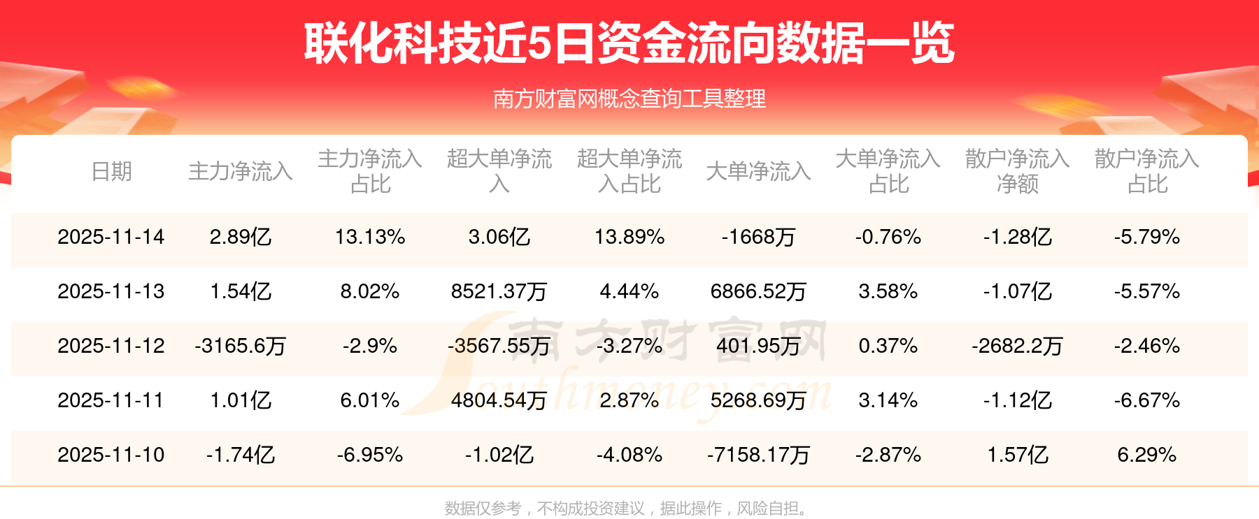 11月14日該股主力凈流入2.89億元,超大單凈流入3.06億元,大單凈流出1668萬元,中單凈流出1.62億元,散戶凈流出1.28億元。