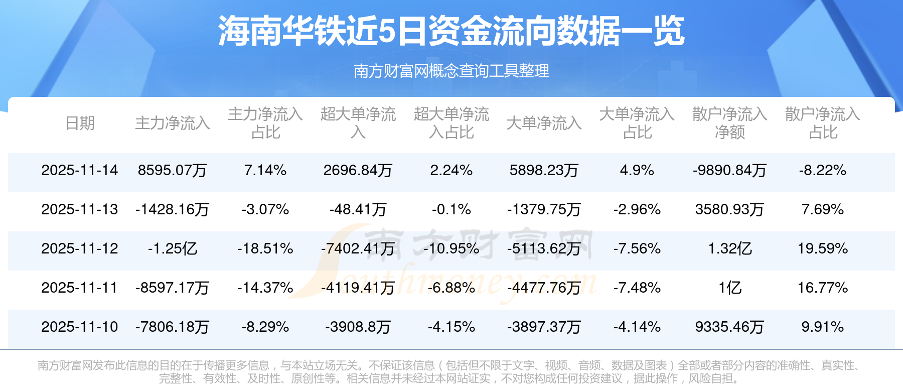 11月14日,海南華鐵(603300)下午3點(diǎn)收盤股價(jià)報(bào)7.810元,漲4.34%,市值為155.95億元,換手率7.71%,當(dāng)日成交額12.03億元。
