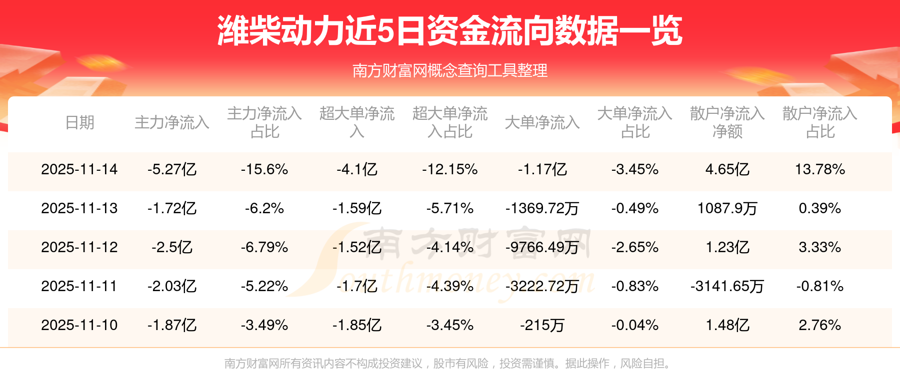11月14日消息,濰柴動(dòng)力主力資金凈流出5.27億元,超大單資金凈流出4.1億元,散戶資金凈流入4.65億元。