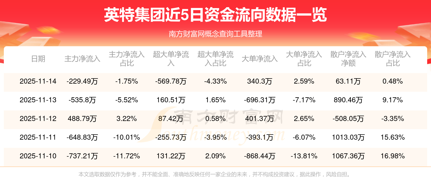 11月14日消息,英特集團(tuán)11月14日主力資金凈流出229.49萬元,超大單資金凈流出569.78萬元,大單資金凈流入340.3萬元,散戶資金凈流入63.11萬元。
