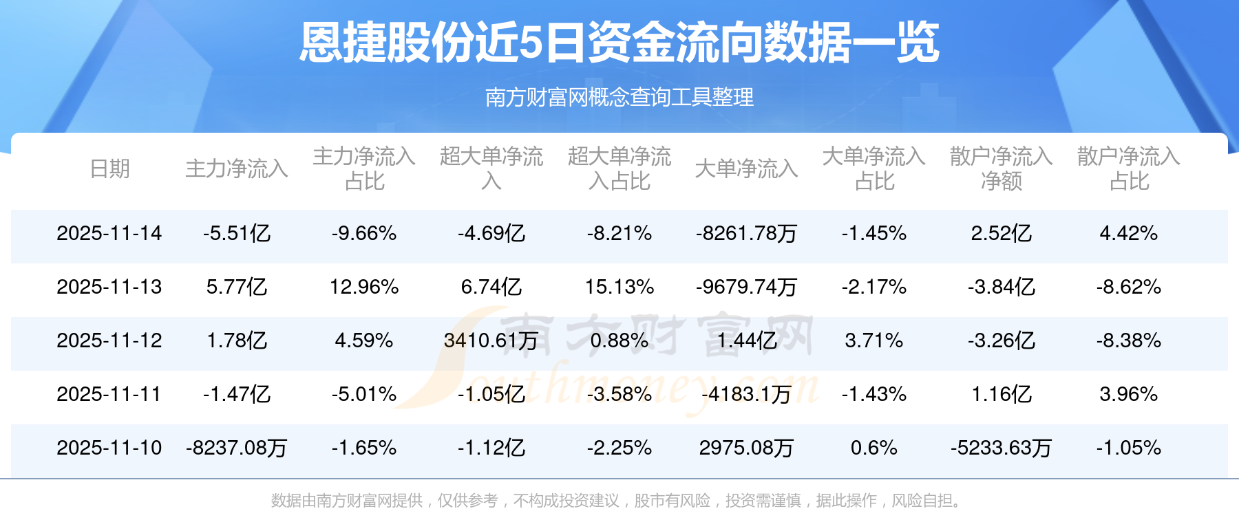 近5日資金流向一覽見下表: