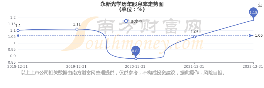 永新光學(xué)歷年股息率走勢(shì)如下圖: