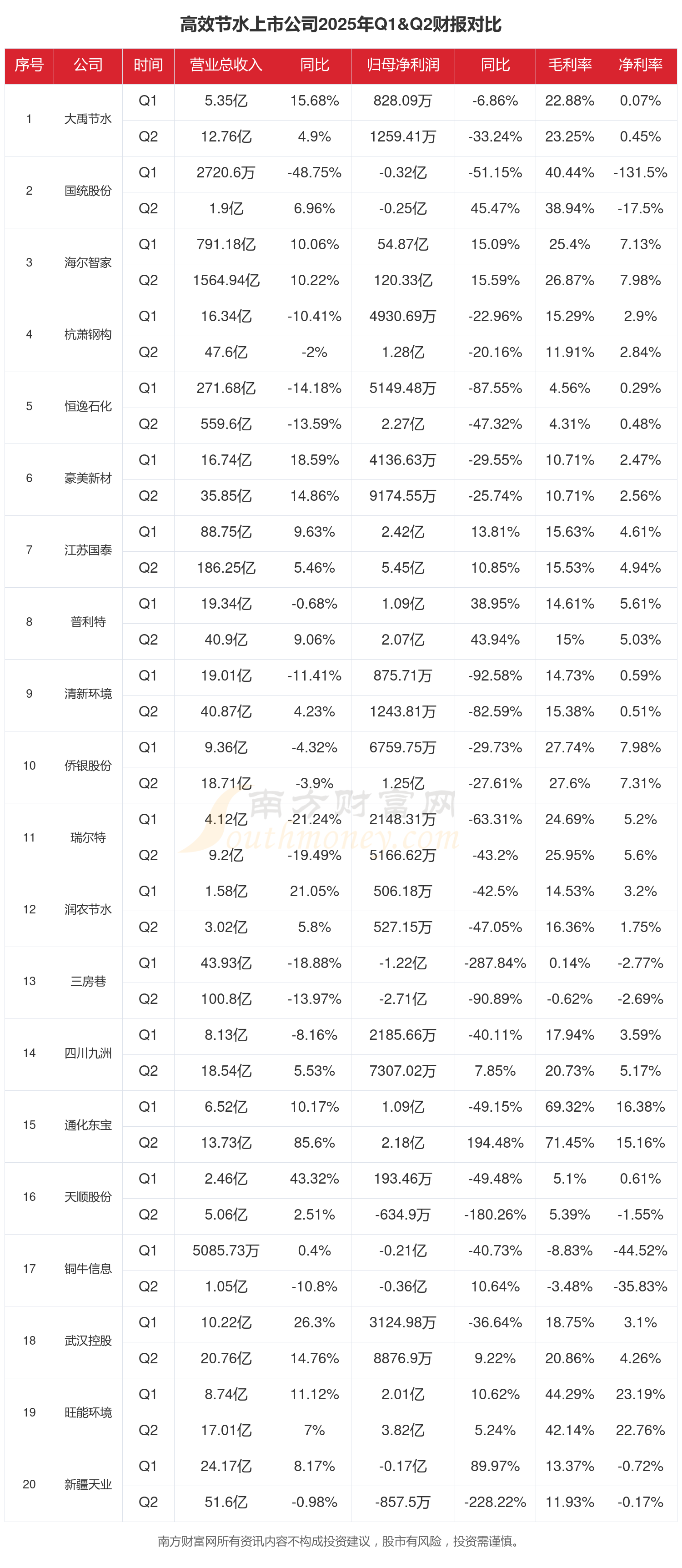 大禹節(jié)水(300021):2025年第二季度季報(bào)顯示,大禹節(jié)水營(yíng)收同比增長(zhǎng)-1.71%至7.41億元;凈利潤(rùn)為431.32萬(wàn),同比增長(zhǎng)-56.75%,毛利潤(rùn)為1.74億,毛利率23.52%。