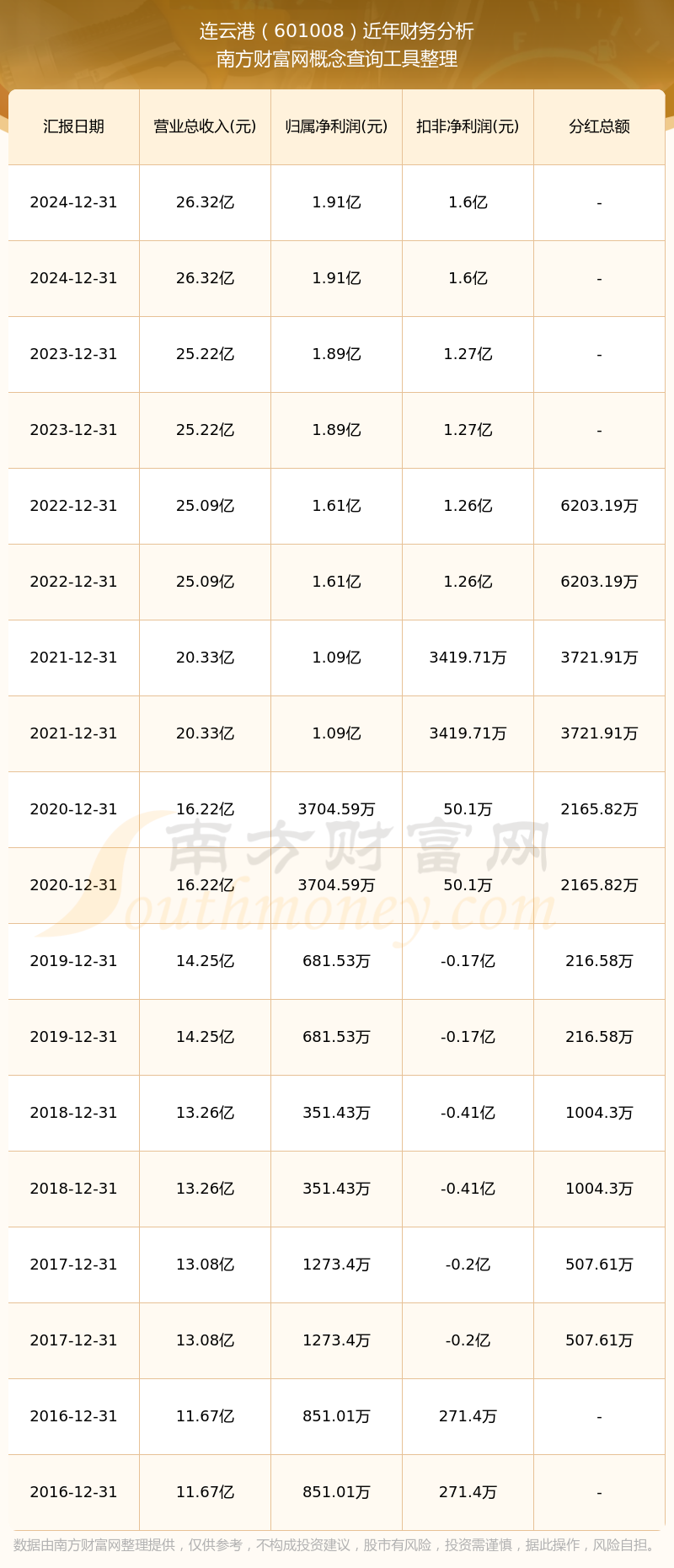 近年連云港分紅派息情況如下表所示: