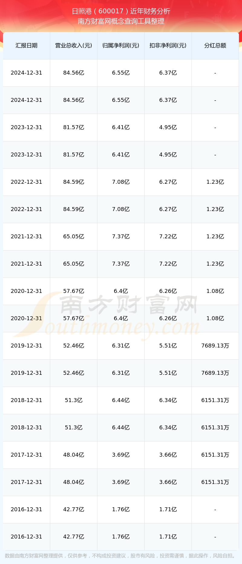 2024年日照港總營(yíng)收84.56億,同比增長(zhǎng)3.67%;凈利潤(rùn)6.55億,同比增長(zhǎng)2.21%;銷售毛利率23.65%。