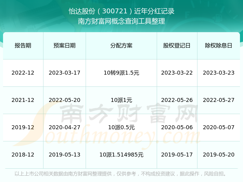 近年怡達(dá)股份分紅派息情況如下表所示: