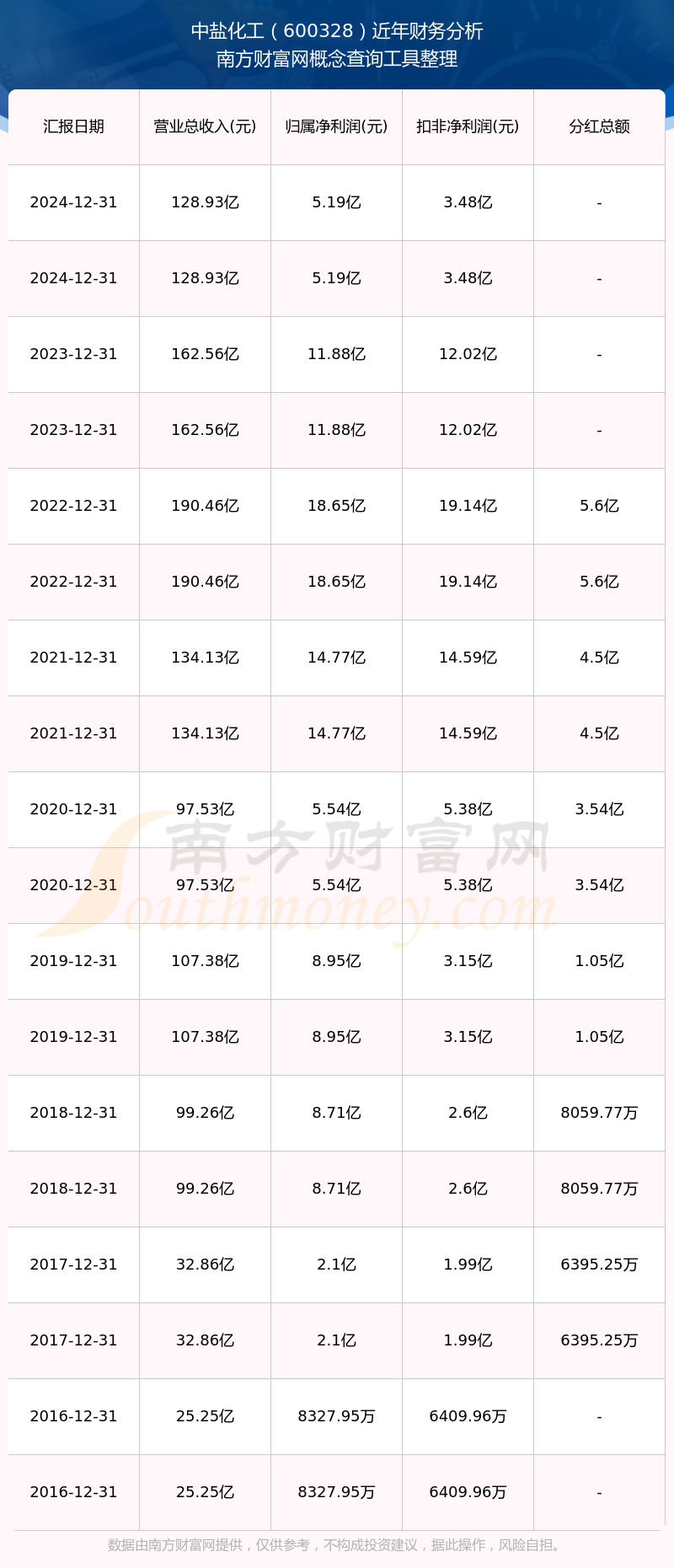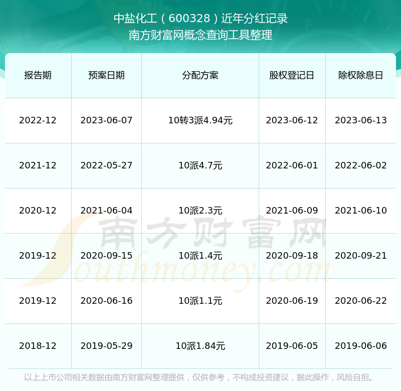 中鹽化工歷年分紅派息情況如下表所示: