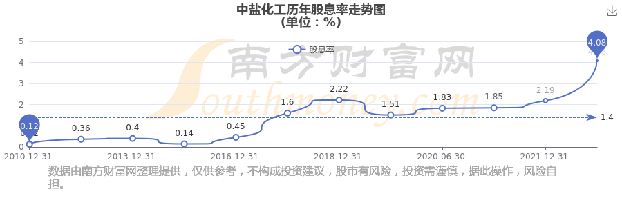 中鹽化工歷年股息率走勢(shì)如下圖:
