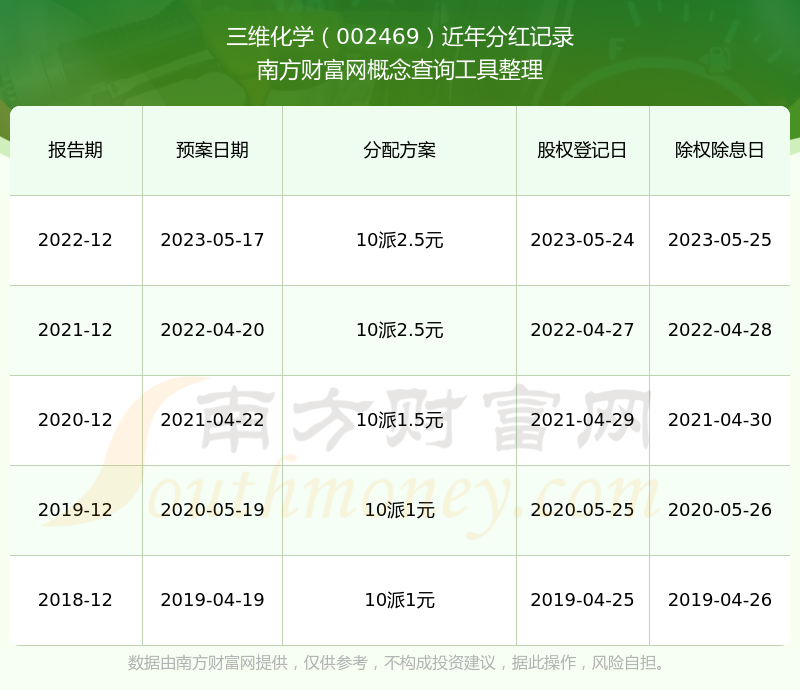 三維化學(xué)最新一次公布的分紅方案:10派2.5元。