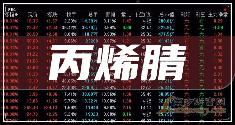 據(jù)南方財富網(wǎng)概念查詢工具數(shù)據(jù)顯示,丙烯腈上市公司有: