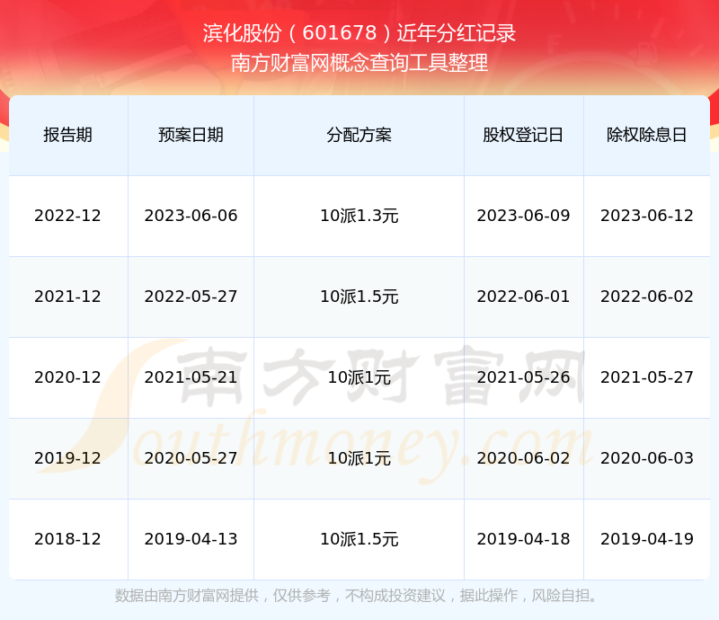 濱化股份最新一次公布的分紅方案:10派1.3元。