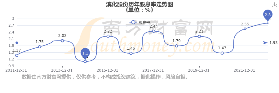 按照南方財富網(wǎng)趨勢選股系統(tǒng)統(tǒng)計,濱化股份所屬行業(yè)為燒堿行業(yè),燒堿行業(yè)分紅排名情況如下表: