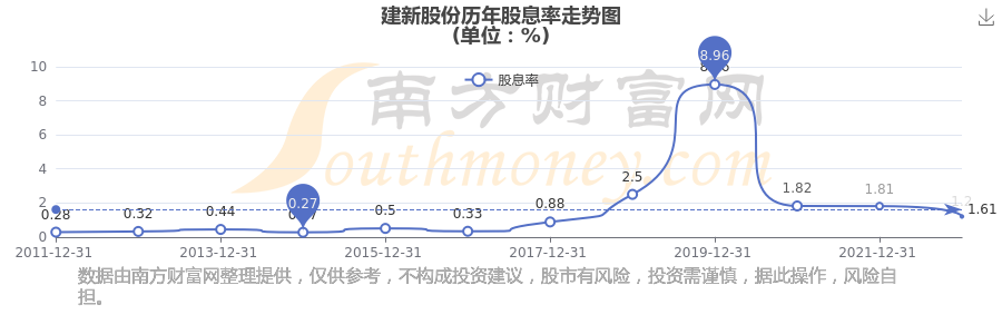 近年建新股份年度股息率走勢如下圖:
