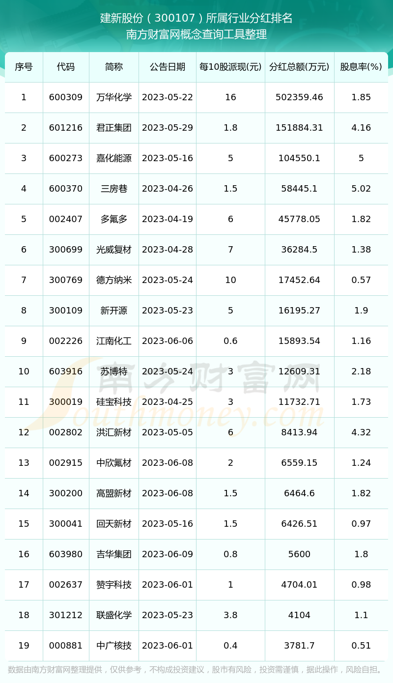 二、建新股份300107行業(yè)分紅排名