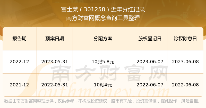 富士萊最新一次公布的分紅方案:10派5.8元。