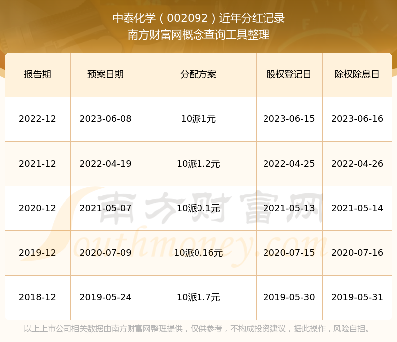 中泰化學(xué)最新一次公布的分紅方案為10派1元。本次權(quán)益分派股權(quán)登記日為2023年6月15日,除權(quán)除息日為2023年6月16日,派息日為2023年6月16日。