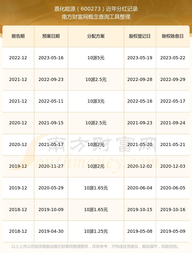 嘉化能源最新一次公布的分紅方案:10派5元。