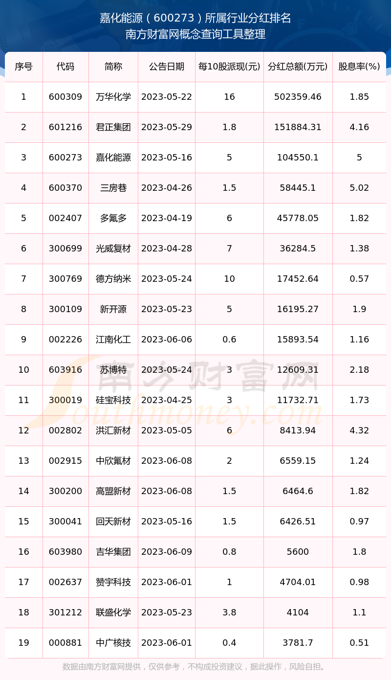 按照南方財(cái)富網(wǎng)趨勢選股系統(tǒng)統(tǒng)計(jì),嘉化能源所屬行業(yè)為脂肪醇行業(yè),脂肪醇行業(yè)分紅排名情況如下表: