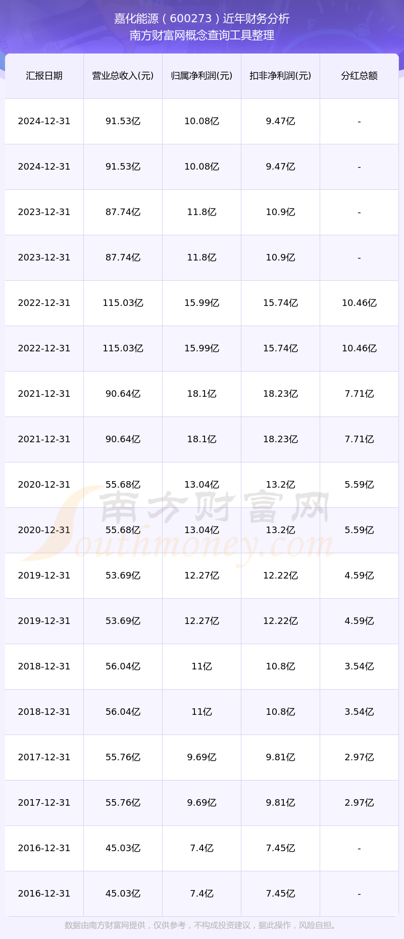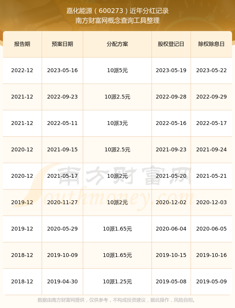 近年嘉化能源分紅派息情況如下表所示: