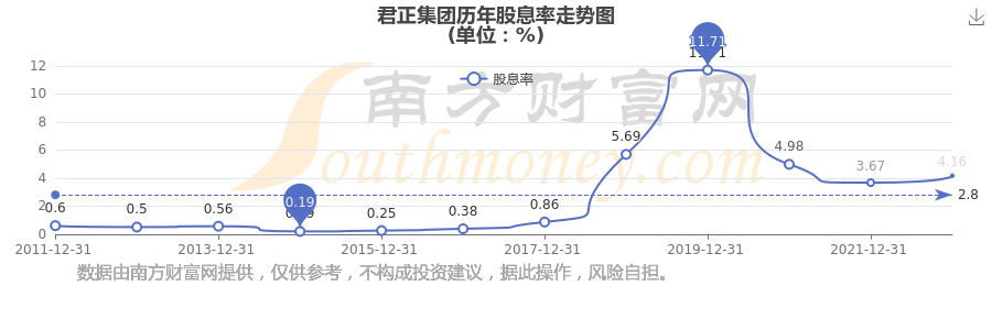 近年君正集團年度股息率走勢如下圖: