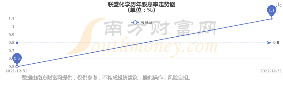近年聯(lián)盛化學(xué)年度股息率走勢(shì)如下圖:
