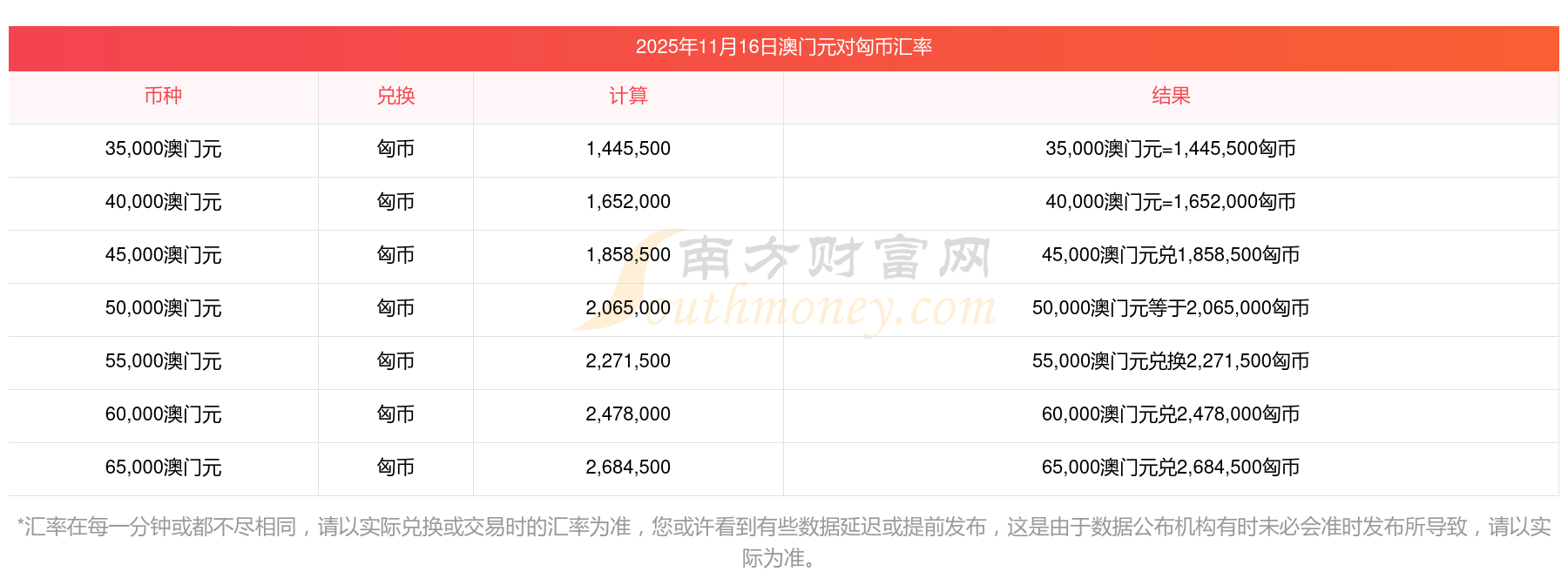 貨幣兌換 | 將2萬澳門元轉(zhuǎn)換匈幣匯率計(jì)算表? 11-16