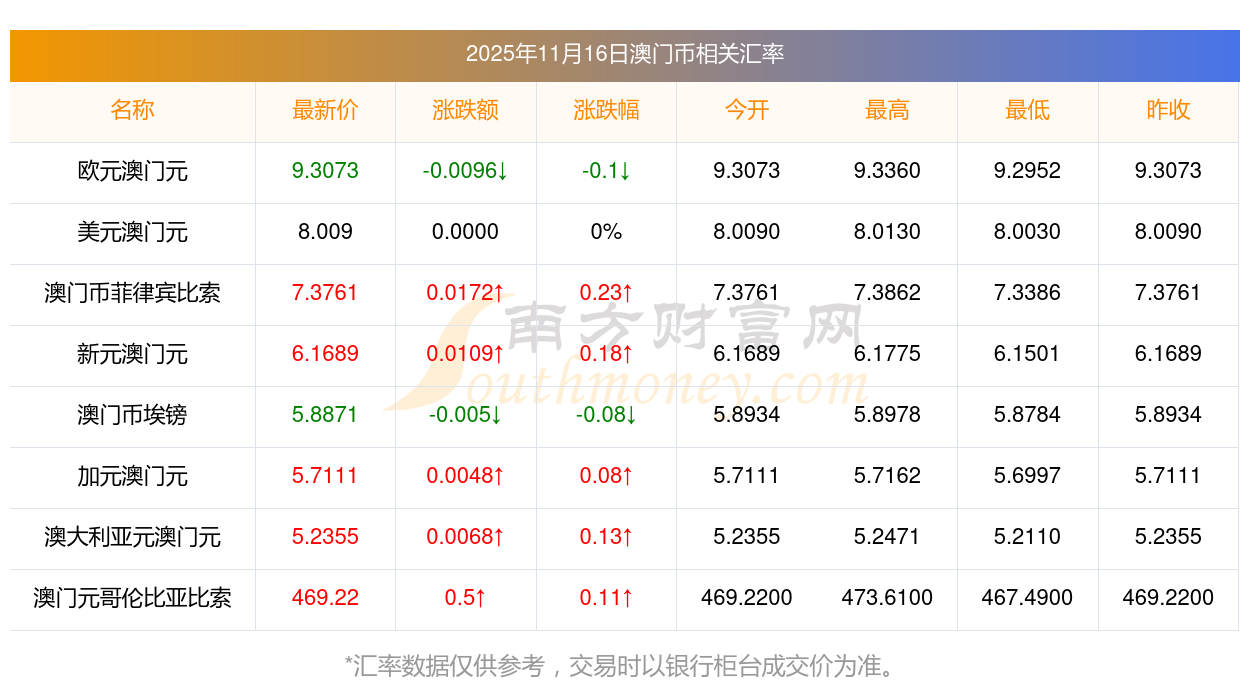 2025年11月16日澳門(mén)幣相關(guān)匯率查詢