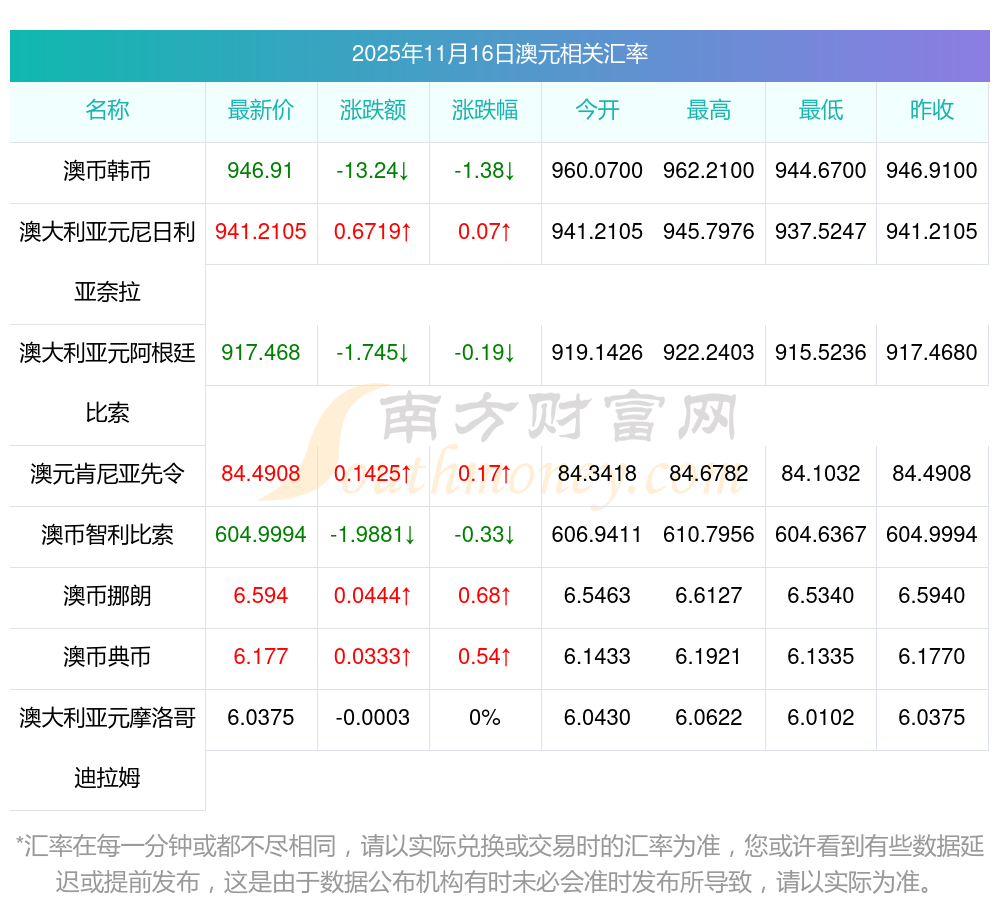 2025年11月16日澳元相關(guān)匯率查詢(xún)