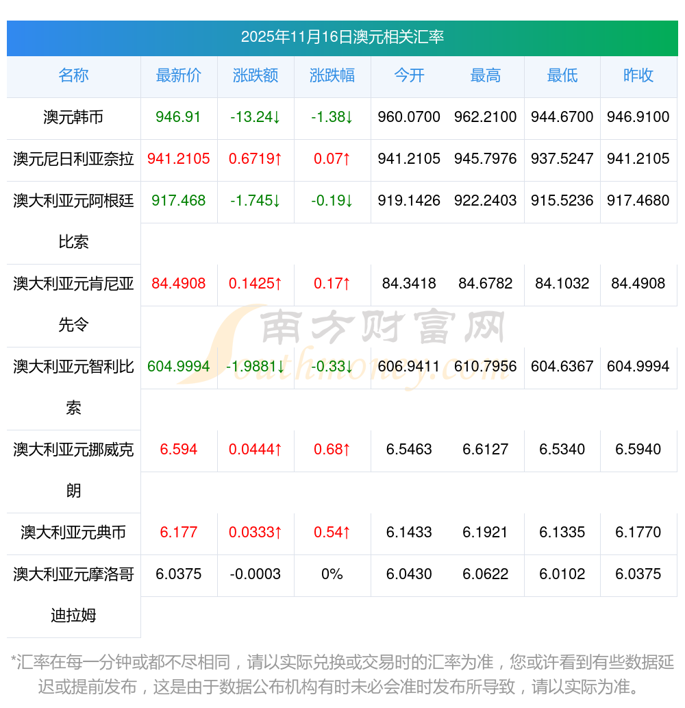 2025年11月16日澳元相關(guān)匯率查詢