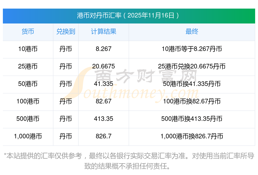 今天匯率行情_4港幣對(duì)丹幣匯率是多少(11-16)