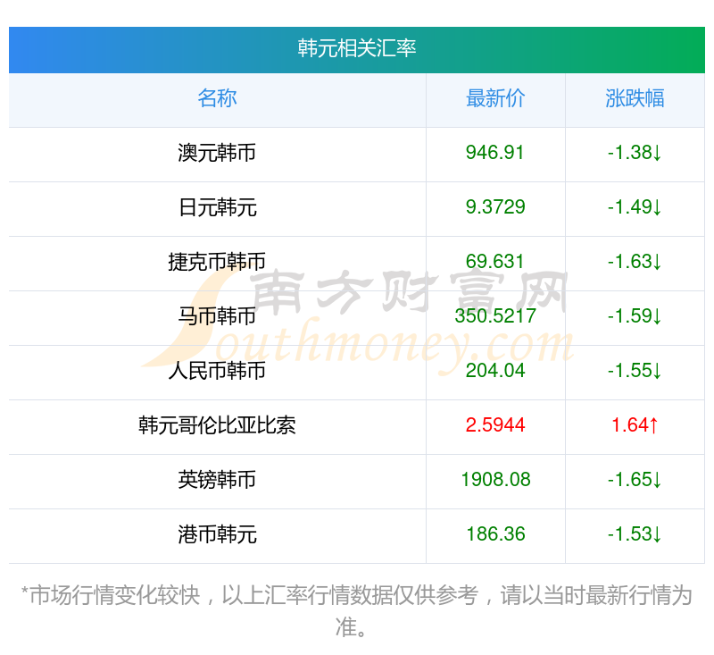 南方財富網(wǎng)為您提供韓元對埃塞俄比亞比爾匯率最新價格詳情。