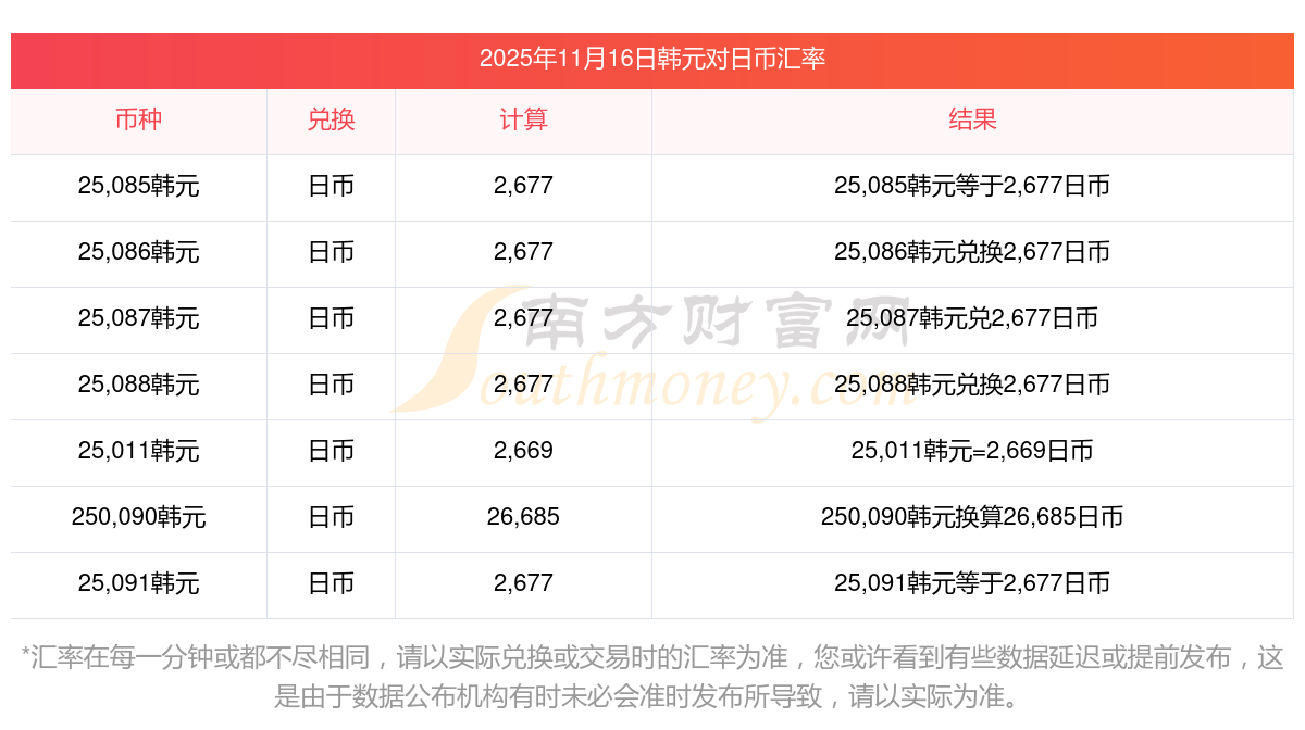 今天韓元兌日元匯率查詢,一韓元兌換多少日元?2025-11-16