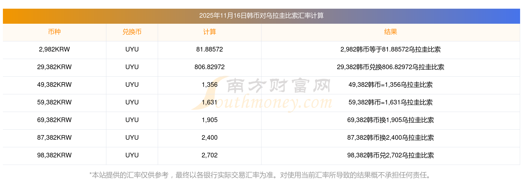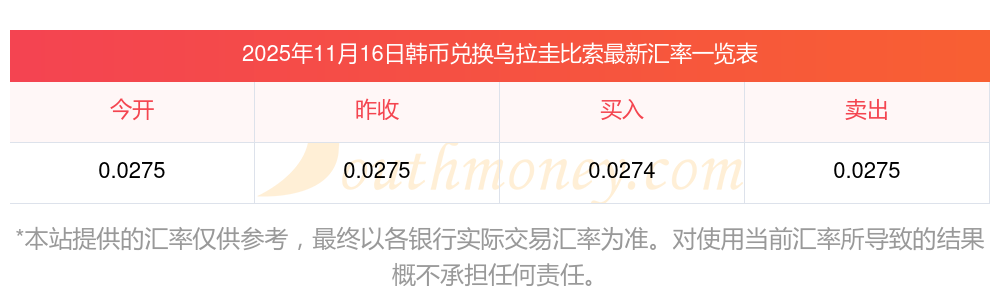 今日韓幣兌換烏拉圭比索價(jià)位表一覽(2025年11月16日)