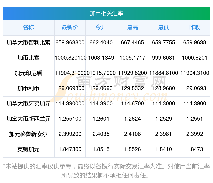 2025年11月16日加幣相關(guān)匯率查詢
