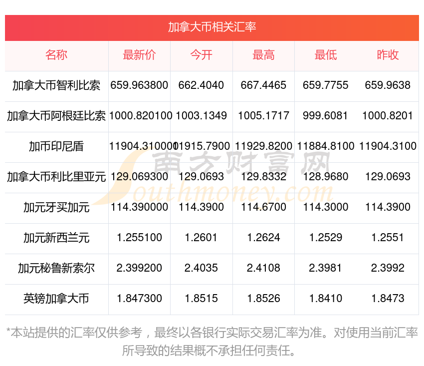 2025年11月16日加拿大幣相關(guān)匯率查詢