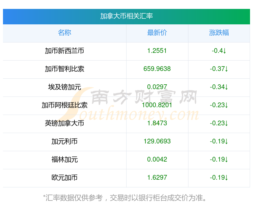 2025年11月16日加拿大幣相關(guān)匯率查詢