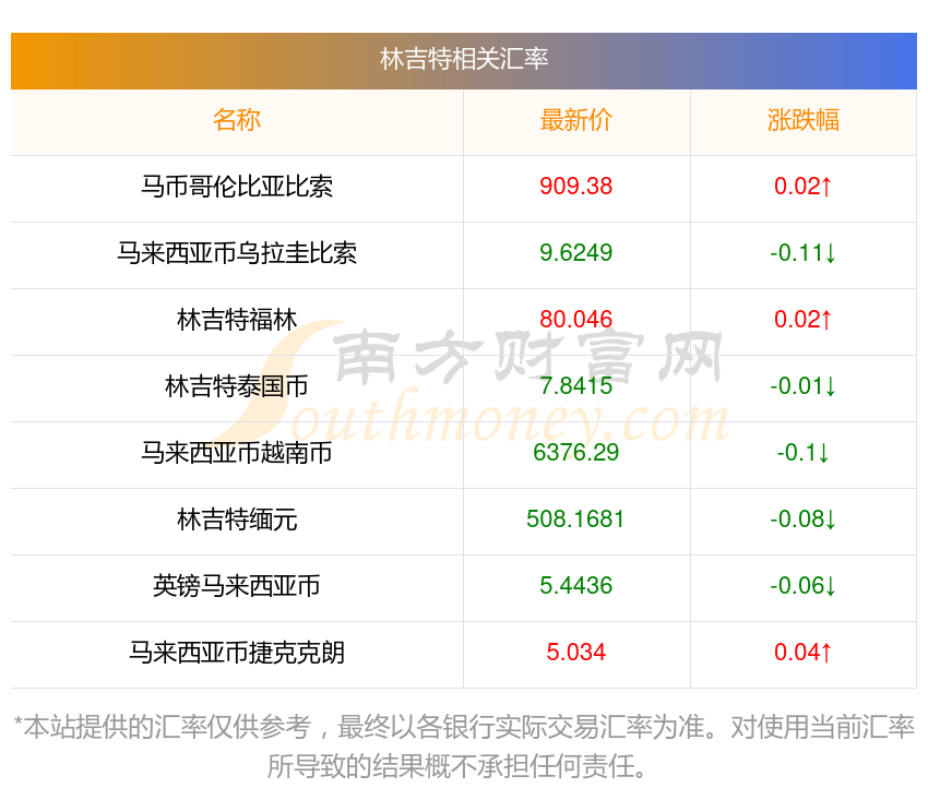 南方財富網(wǎng)為您提供林吉特對比索匯率最新價格詳情。