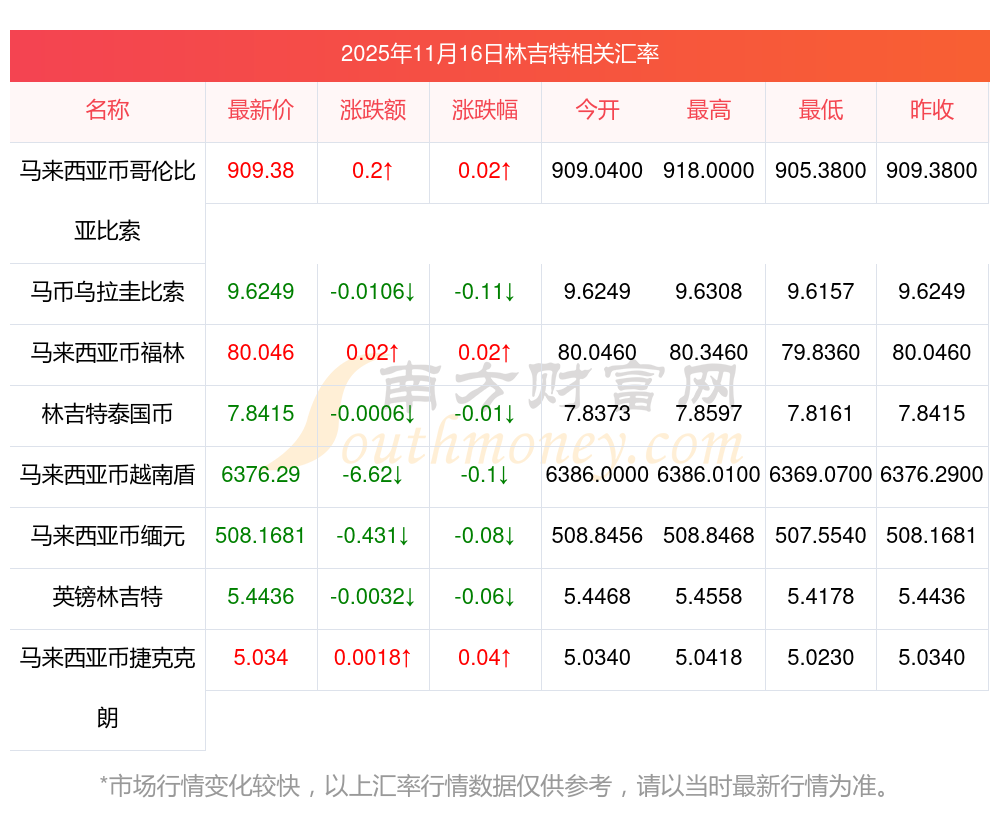 2025年11月16日林吉特相關(guān)匯率查詢(xún)
