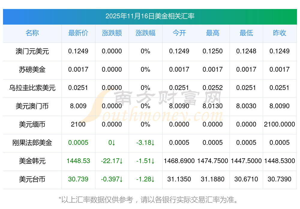 根據(jù)2025年11月16日匯率計算,USD兌換MYR匯率最新價4.132500:今日開價4.1270,昨日收價4.1325,最高價4.1375,最低價4.1270。
