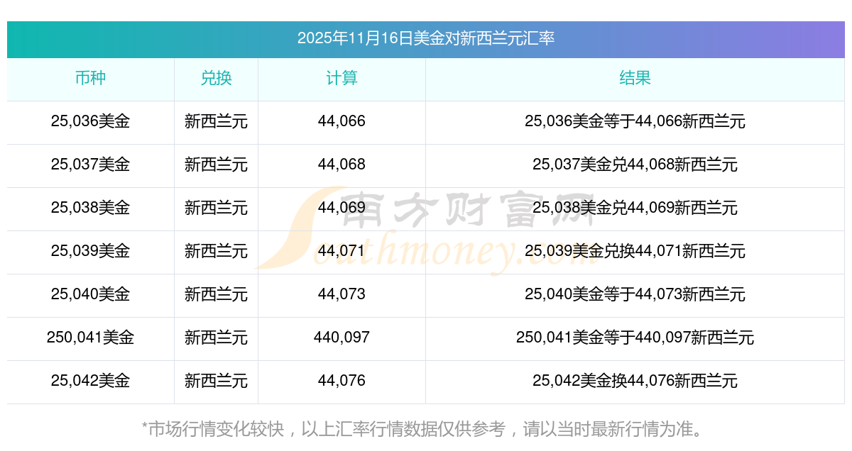 今天匯率行情:100美元兌新西蘭幣匯率多少(2025/11/16)